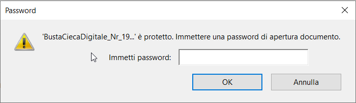 Aprire l’allegato Busta Cieca digitale PDF e digitare la password ricevuta via SMS