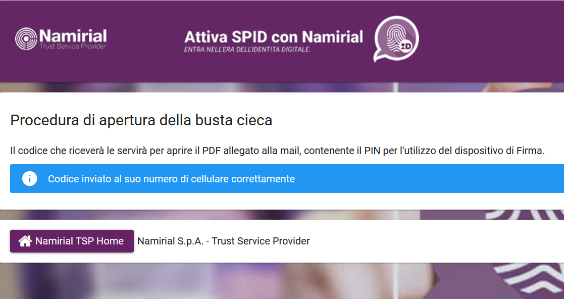 Il codice che riceverà servirà per aprire il PDF allegato alla mail, contenente il PIN per l’utilizzo del dispositivo di Firma.